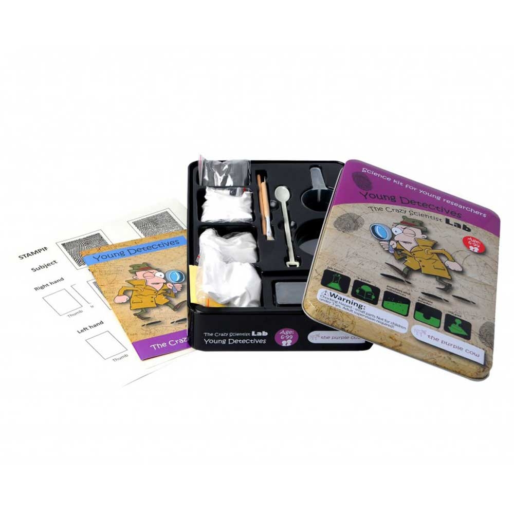 Η νέα σειρά πειραμάτων της εταιρείας The Purple cow θα συναρπάσει του μικρούς μας ερευνητές με τις εκπαιδευτικές δραστηριότητες φυσικών επιστημών. Το σετ του ερευνητή περιέχει 7 πειράματα στα οποία τα παιδιά θα δημιουργήσουν και ταξινομήσουν τα δικά τους αποτυπώματα. Θα διδαχθούν πώς να εξάγουν από διάφορες επιφάνειες και πώς να ανακαλύψουν τα τέλεια αποτυπώματα. Το σετ περιέχει όλα τα υλικά που χρειάζονται για τη παραγωγή των πειραμάτων.
