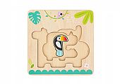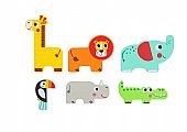 Τα κομμάτια του παζλ απεικονίζουν ζωάκια από την άγρια φύση: έναν παπαγάλο τουκάν, έναν ρινόκερο, έναν κροκόδειλο, ένα λιοντάρι, μια καμηλοπάρδαση και έναν ελέφαντα. Το σετ περιμβάνει μία βάση που διαθέτει εσοχές για να κατασκευάσουν τα παιδιά το παζλ ακολουθώντας το γραμμικό σχέδιο των ζώων.