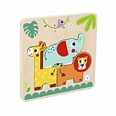 Ξύλινο παζλ πολλαπλών επιπέδων - Άγρια ζώα - Tooky Toy