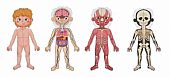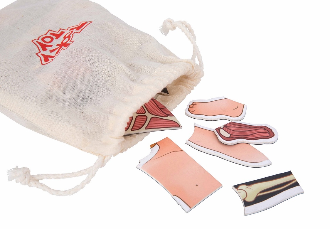 Κάθε εικόνα παζλ δείχνει μια διαφορετική εικόνα του σώματος και το παιδί ανάλογα την απεικόνιση τοποθετεί τα κομμάτια του παζλ στη σωστή θέση τους. Από τις εικόνες το παιδί μαθαίνει για τον σκελετό και τις ονομασίες των οστών, το σώμα με το δέρμα και τους μύες.