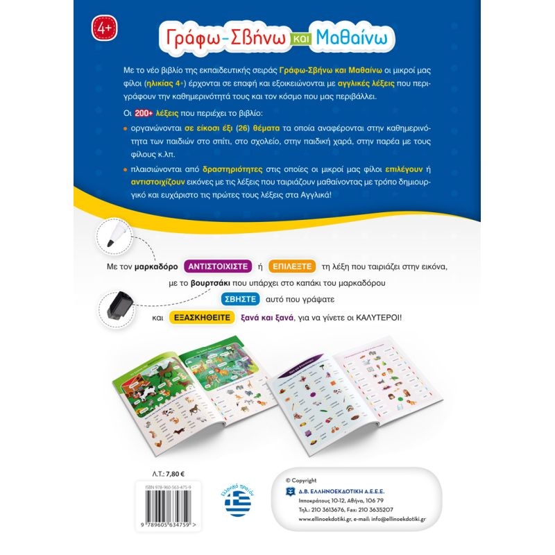 Γράφω-Σβήνω και Μαθαίνω τις πρώτες μου λέξεις στα Αγγλικά (4+)