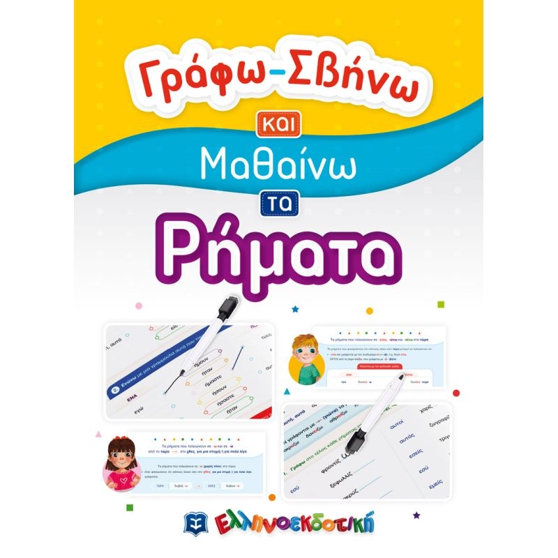 Με το νέο βιβλίο της εκπαιδευτικής σειράς Γράφω-Σβήνω και Μαθαίνω οι μικροί μας φίλοι έρχονται σε επαφή με τα ΡΗΜΑΤΑ της γλώσσας μας.