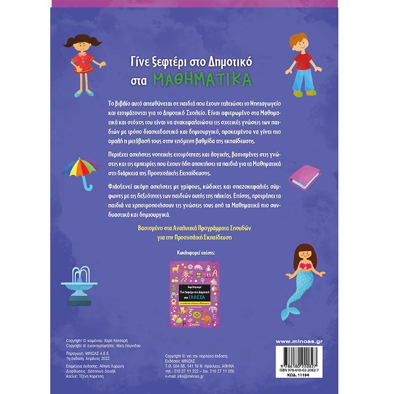 στη διάρκεια της Προσχολικής Εκπαίδευσης. Φιλοξενεί ακόμη ασκήσεις με γρίφους, κώδικες και σπαζοκεφαλιές σύμφωνες με τις δεξιότητες των παιδιών αυτής της ηλικίας. Επίσης, προτρέπει τα παιδιά να χρησιμοποιήσουν τις γνώσεις τους από τα Μαθηματικά πιο συνδυαστικά και δημιουργικά. Βασισμένο στα Αναλυτικά Προγράμματα Σπουδών για την Προσχολική Εκπαίδευση.