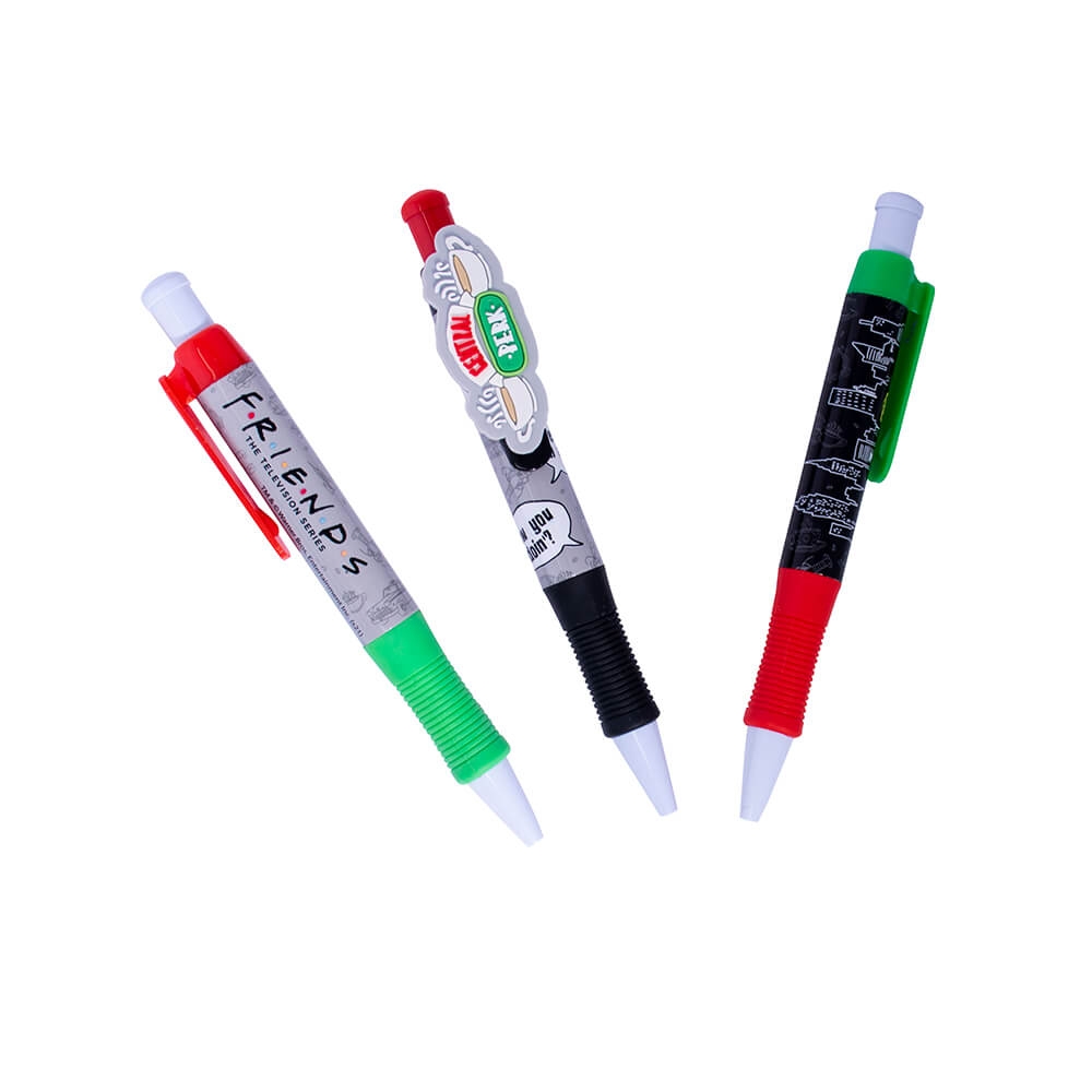 How you Doin?? Ξεκινήστε τη συλλογή χαρτικών σας, εμπνευσμένη από τη σειρά Friendς, με αυτό το υπέροχο πακέτο τριών στυλό. Με μερικά από τα πιο αξιομνημόνευτα αποσπάσματα από την αγαπημένη σειρά (We were on a break, σχέδιο 3D Central Perk και How you doin ';), Aυτό το σετ είναι ένα τέλειο δώρο για τους λάτρεις αυτής της αίσθησης της δεκαετίας του '90!