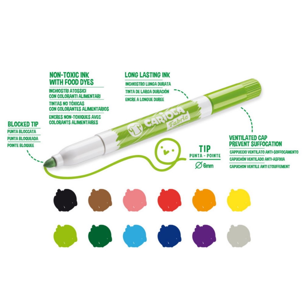 Ανεξίτηλοι μαρκαδόροι 12 χρωμάτων για ύφασμα - Carioca Fabric