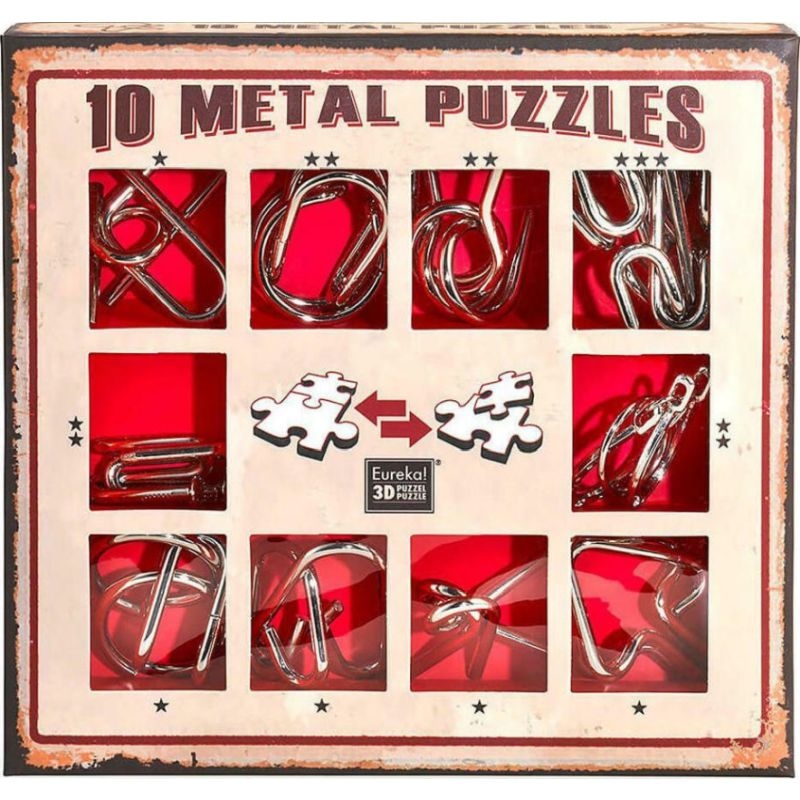 Συλλογή 10 Μεταλλικών Σπαζοκεφαλιών/Puzzle - Κόκκινο Σετ - Eureka