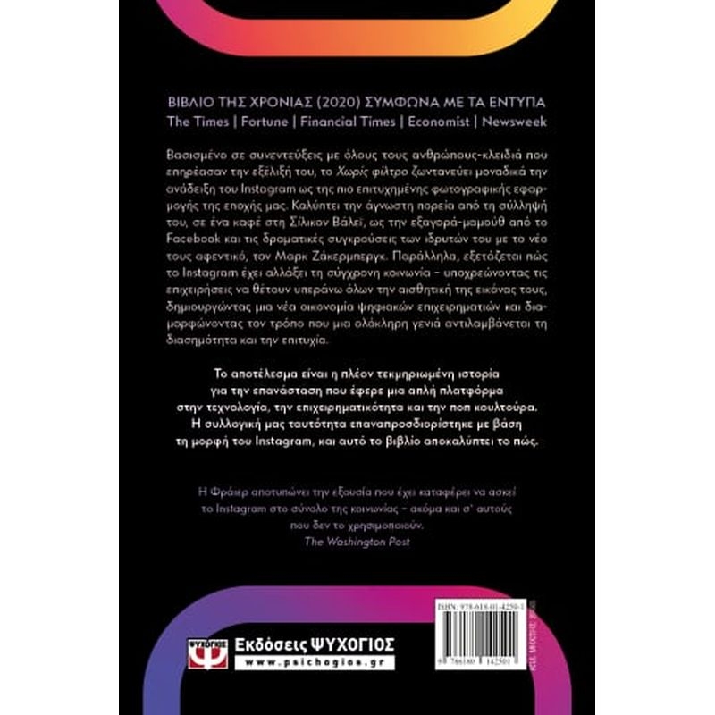 Το αποτέλεσμα είναι η πλέον τεκμηριωμένη ιστορία για την επανάσταση που έφερε μια απλή πλατφόρμα στην τεχνολογία, την επιχειρηματικότητα και την ποπ κουλτούρα. Η συλλογική μας ταυτότητα επαναπροσδιορίστηκε με βάση τη μορφή του Instagram, και αυτό το βιβλίο αποκαλύπτει το πώς.