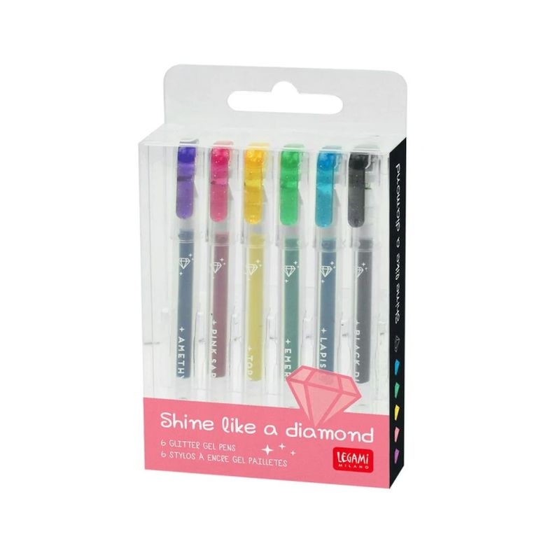 Κάντε τη μολυβοθήκη σας να λαμπυρίζει με το σετ Legami Shine Like A Diamond με 6 στυλό Glitter Mini Gel. Με μύτη 1,0 mm, αυτά τα στυλό γκλίτερ καλύπτουν όλα τα χρώματα του ουράνιου τόξου, συμπεριλαμβανομένου του βιολετί, του χρυσού, του πράσινου, του μπλε, του ροζ και του μαύρου, ώστε να μπορείτε να διακοσμήσετε τις σημειώσεις σας, να γράψετε επιπλέον ειδικά μηνύματα και να χαρίσετε λάμψη στα σχέδιά σας.