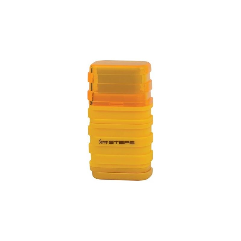 Ξύστρα διπλή, μία για λεπτή και μία για χοντρή μύτη, και γόμα μαζί στην ίδια συσκευασία, από την Serve. Εμπνευσμένο από τη μοντέρνα αρχιτεκτονική, το Serve Steps έρχεται με εξαιρετική εργονομία, μοντέρνα εμφάνιση και ελκυστικά χρώματα. Διαθέτει ασφαλής και ανθεκτική ξύστρα και μία υψηλής ποιότητας "χωρίς σκόνη και χωρίς ίχνη" γόμα. Άνετη χρήση με δομή με στρώσεις και μαλακό σώμα. Στην μία πλευρά είναι η γόμα και στην άλλη πλευρά είναι οι ξύστρες και το δοχείο για ξύσματα μολυβιού.
