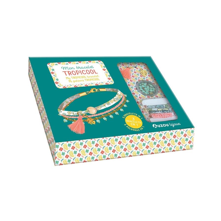 Γνωρίστε την ικανοποίηση και την απόλαυση του να φοράτε ένα κόσμημα που έχετε φτιάξει μόνοι σας! Η σειρά «Φτιάχνω Κοσμήματα», της αγαπημένης μας γαλλικής εταιρίας Auzou, διαθέτει μεγάλη γκάμα από πρωτότυπα, μοντέρνα και δημιουργικά κιτ κατασκευής κοσμημάτων. Βραχιόλια, κολιέ, δαχτυλίδια και πολλά άλλα, ανακαλύψτε τα όλα και δημιουργήστε τις πιο μοναδικές και καταπληκτικές συλλογές αξεσουάρ και κοσμημάτων! Το συγκεκριμένο κιτ περιλαμβάνει όλα όσα θα χρειαστείτε για να φτιάξετε ένα, 3 σε 1, τροπικό βραχιόλι.