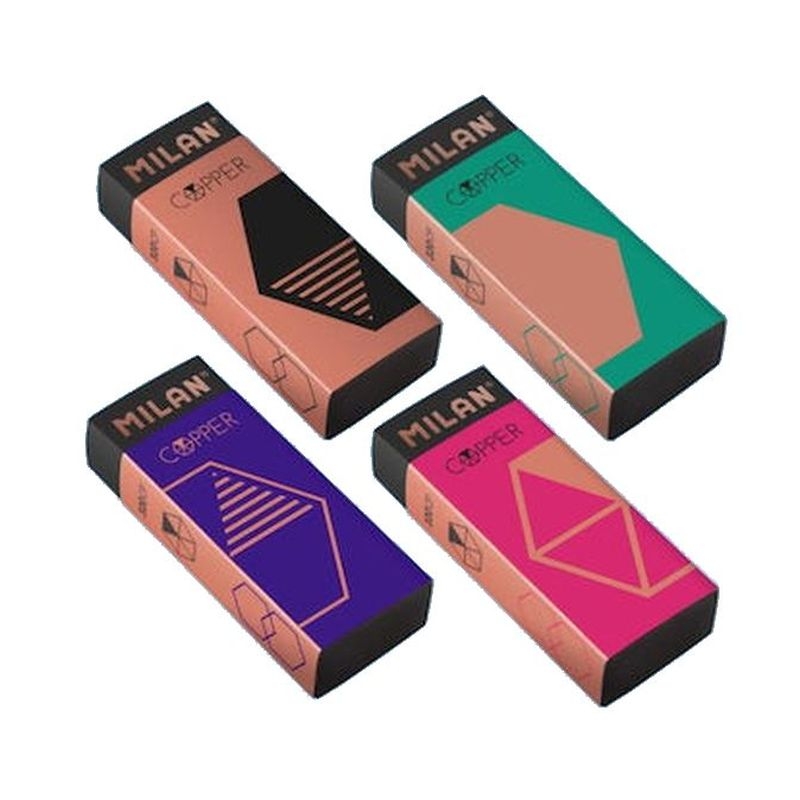 Σβήστρα Milan Copper από συνθετικό καουτσούκ. Κατάλληλη για ευρύ φάσμα μολυβιών, σε όλα τα είδη χαρτιών, χωρίς να αφήνει μουτζούρες.