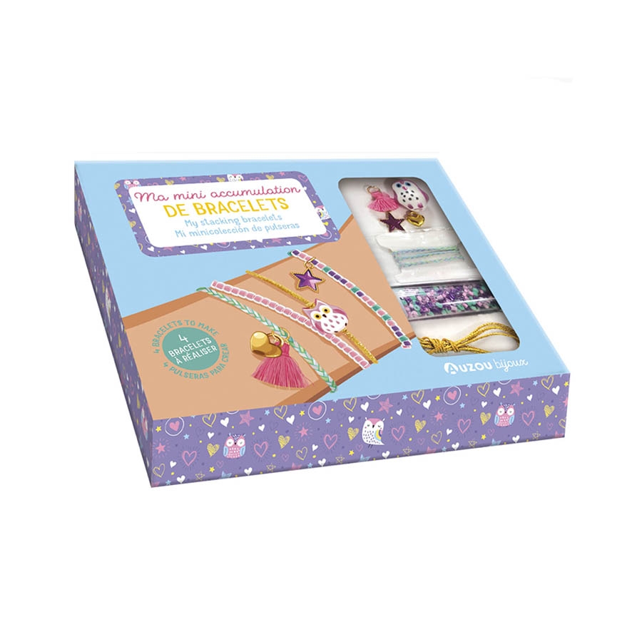 Γνωρίστε την ικανοποίηση και την απόλαυση του να φοράτε ένα κόσμημα που έχετε φτιάξει μόνοι σας! Η σειρά «Φτιάχνω Κοσμήματα», της αγαπημένης μας γαλλικής εταιρίας Auzou, διαθέτει μεγάλη γκάμα από πρωτότυπα, μοντέρνα και δημιουργικά κιτ κατασκευής κοσμημάτων. Βραχιόλια, κολιέ, δαχτυλίδια και πολλά άλλα, ανακαλύψτε τα όλα και δημιουργήστε τις πιο μοναδικές και καταπληκτικές συλλογές αξεσουάρ και κοσμημάτων! Το συγκεκριμένο κιτ περιλαμβάνει όλα όσα θα χρειαστείτε για να φτιάξετε μία συλλογή από 4 βραχιολάκια.