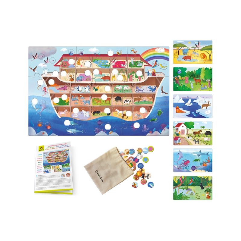 Επιβιβαστείτε και πάμε! Βοηθήστε τον Νώε να σώσει όλα τα ζωάκια από τον κατακλυσμό! Ένα πρωτότυπο παιχνίδι - μπίνγκο στο οποίο πρέπει να βάλετε όλα τα ζωάκια που απεικονίζονται στις καρτέλες φυσικών-περιβαλλόντων, στη μεγάλη κιβωτό του Νώε ώστε να σωθούν από την πλημμύρα, για να κερδίσετε. Αλλά προσέξτε... υπάρχουν παγίδες που μπορεί να σας απομακρύνουν από τη νίκη!