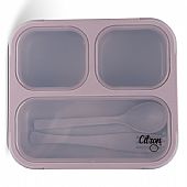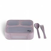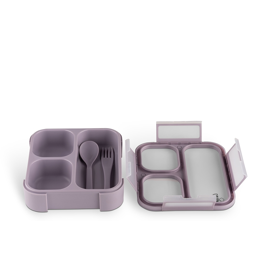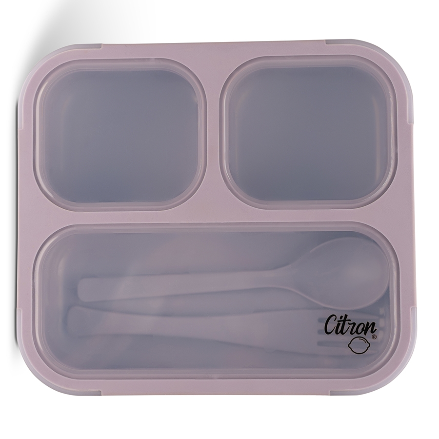 Φαγητοδοχείο Πλαστικό με Διαχωριστικά, Κουτάλι & Πιρούνι - Purple (600ml) - Citron