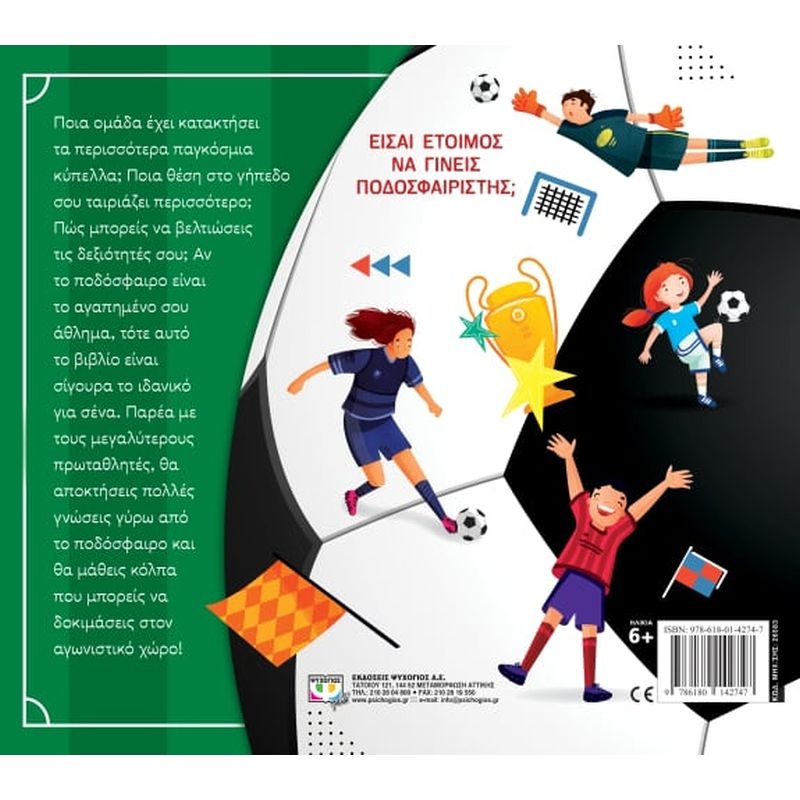 Ποια ομάδα έχει κατακτήσει τα περισσότερα παγκόσμια κύπελλα; Ποια θέση στο γήπεδο σου ταιριάζει περισσότερο; Πώς μπορείς να βελτιώσεις τις δεξιότητές σου; Αν το ποδόσφαιρο είναι το αγαπημένο σου άθλημα, τότε αυτό το βιβλίο είναι σίγουρα το ιδανικό για σένα. Παρέα με τους μεγαλύτερους πρωταθλητές, θα αποκτήσεις πολλές γνώσεις γύρω από το ποδόσφαιρο και θα μάθεις κόλπα που μπορείς να δοκιμάσεις στον αγωνιστικό χώρο!