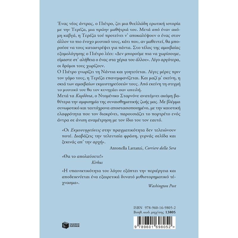 Μετά τα Κορδόνια, ο Ντοµένικο Σταρνόνε ανατέµνει ακόµη βαθύτερα την αµφισηµία της συναισθηµατικής ζωής µας. Με βλέµµα συνωµοτικό και ταυτόχρονα αποστασιοποιηµένο, µε την καυστική ελαφρότητα που τον διακρίνει, παρουσιάζει το πορτρέτο ενός άντρα σε άνιση αναµέτρηση µε τον ίδιο του τον εαυτό.