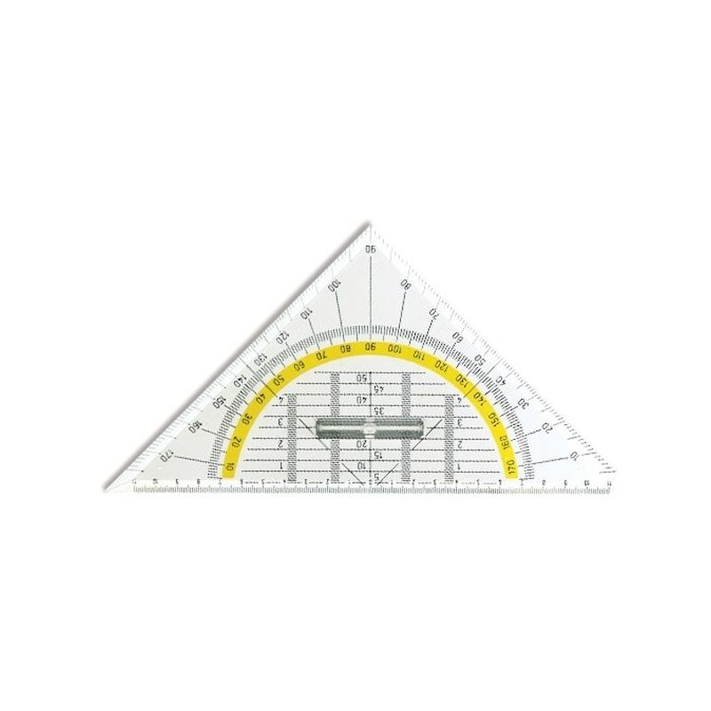 Το τριγωνικό μοιρογνωμόνιο είναι κατάλληλο για σχεδίαση και είναι εφοδιασμένο με λαβή και διπλό ενσωματωμένο γωνιόμετρο.