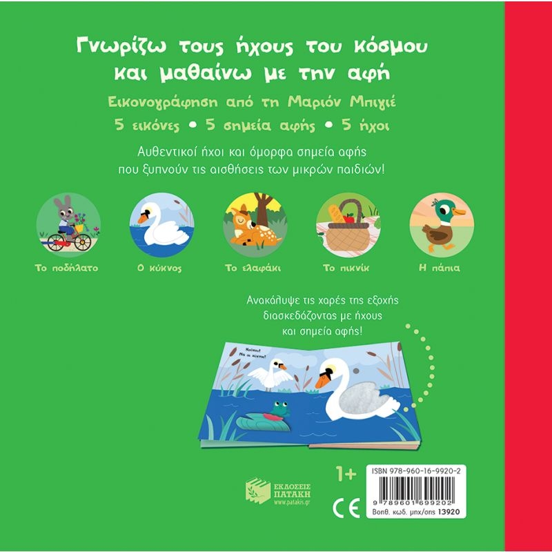 Με 5 σημεία αφής, 5 ήχους και 5 εικόνες: το ποδήλατο, τον κύκνο, το ελαφάκι, το πικνίκ, την πάπια.
