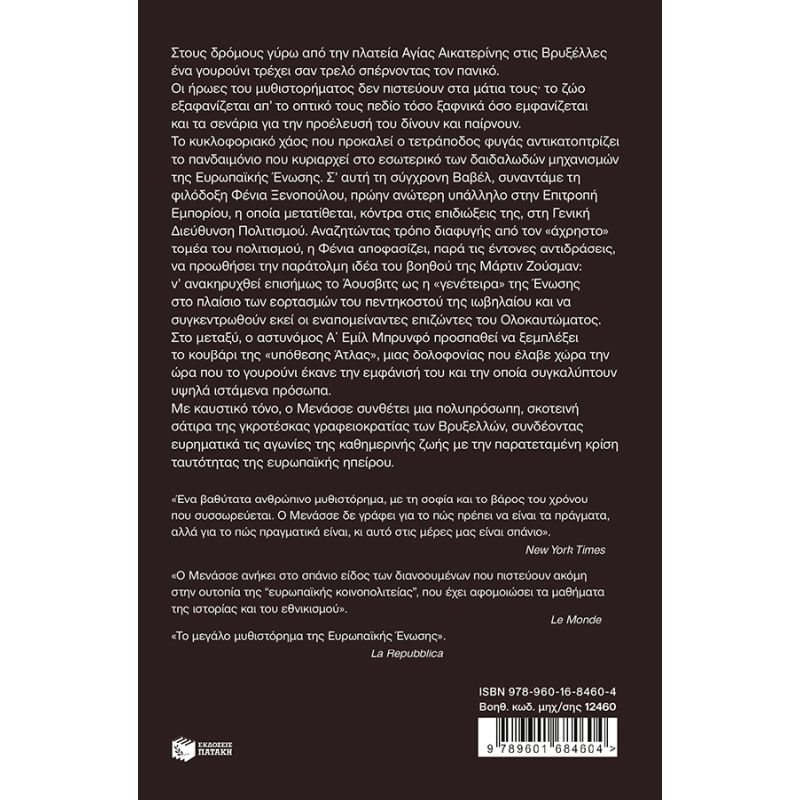 Με καυστικό τόνο, ο Μενάσσε συνθέτει μια πολυπρόσωπη, σκοτεινή σάτιρα της γκροτέσκας γραφειοκρατίας των Βρυξελλών, συνδέοντας ευρηματικά τις αγωνίες της καθημερινής ζωής με την παρατεταμένη κρίση ταυτότητας της ευρωπαϊκής ηπείρου.
