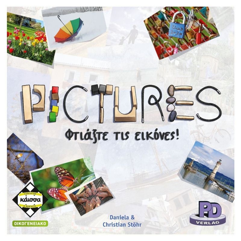Το Pictures είναι ένα γρήγορο οικογενειακό παιχνίδι με πολύ απλούς κανόνες. Σχηματίστε την εικόνα της μυστικής κάρτας - φωτογραφίας σας με ένα σετ υλικών, που θα μπορούσε να είναι κορδόνια, χρωματιστοί κύβοι, εικονίδια, ραβδιά και πέτρες, ή τουβλάκια με τέτοιο τρόπο, ώστε οι υπόλοιποι παίκτες να μαντέψουν τι φτιάχνετε!