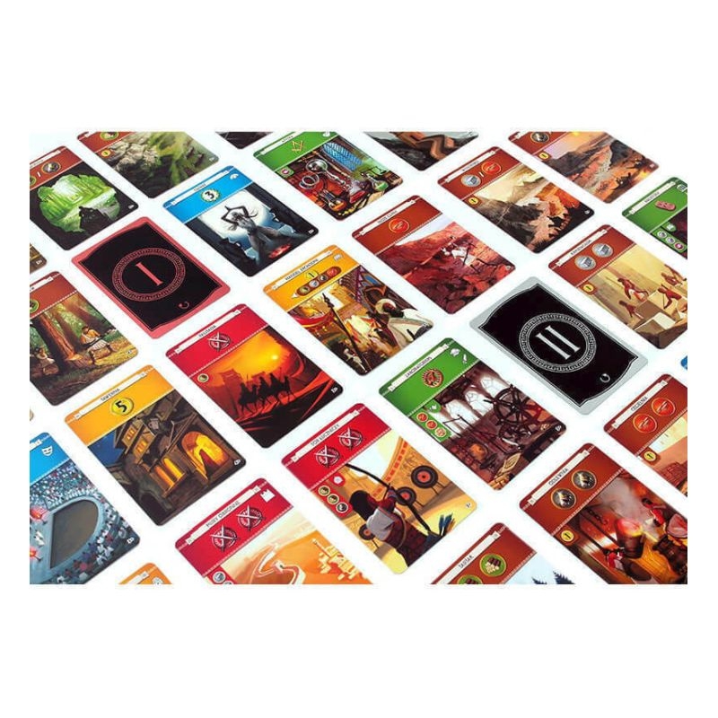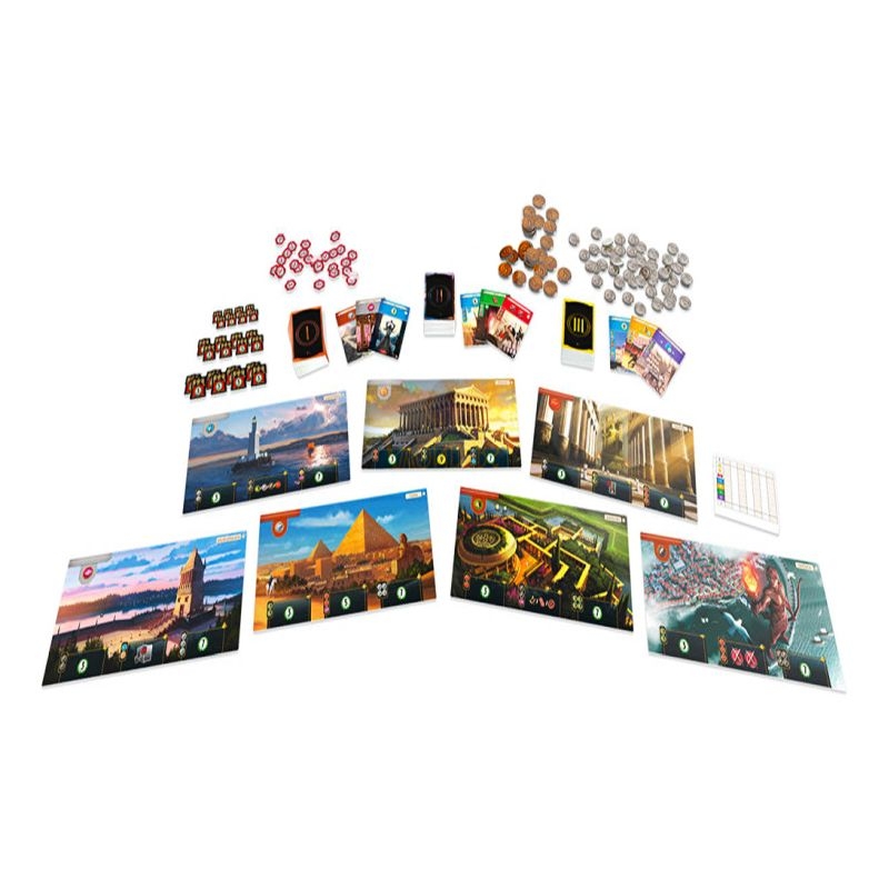 Περιλαμβάνει: 7 ταμπλό Θαυμάτων, 148 κάρτες Εποχής, 78 Νομίσματα, 48 δείκτες Πολεμικής Σύρραξης, 1 μπλοκ βαθμολογίας, 3 Πίνακες Περιγραφής Ιδιοτήτων, 1 Πίνακας με Λίστα Καρτών και Αλυσίδες Καρτών, Κανόνες