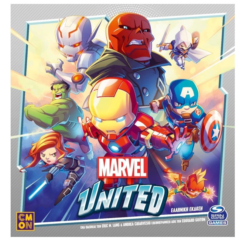 Στο Marvel United παίρνετε τον ρόλο Υπερηρώων της Marvel, που συνεργάζονται για να σταματήσουν τα σχέδια ενός ισχυρού Εγκληματία που τον ελέγχει το ίδιο το παιχνίδι. Κάθε Εγκληματίας εφαρμόζει τον μοναδικό γι’ αυτόν απώτερο σκοπό, με κάρτες που ενεργοποιούν διαφορετικές ιδιότητες, και προκλήσεις στις διάφορες τοποθεσίες. Οι Υπερήρωες πρέπει να επιλέξουν προσεκτικά τις κάρτες που θα παίξουν, κάρτες οι οποίες όχι μόνο προσφέρουν διαφορετικές ενέργειες και υπερδυνάμεις, αλλά συνδυάζονται με τις ενέργειες άλλων Υπερηρώων για να κάνουν το αδύνατο, δυνατό. Φτιάξτε την ιστορία σας, ενώστε τις δυνάμεις σας, και σώστε τον κόσμο!