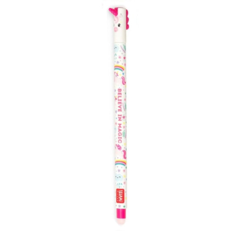 Πείτε αντίο στα λάθη και στην για τη διορθωτική ταινία: με το Legami Unicorn Erasable Gel Pen μπορείτε να σβήσετε τα λάθη σας και να συνεχίσετε να γράφετε. Χάρη στο ευαίσθητο στη θερμότητα ροζ μελάνι και στο άκρο της γόμας, μπορείτε να κάνετε τα λάθη να εξαφανιστούν χωρίς να φθείρετε την επιφάνεια. Και με το «Believe in Magic» γραμμένο στο στέλεχος, οι δυνατότητες είναι ατελείωτες.