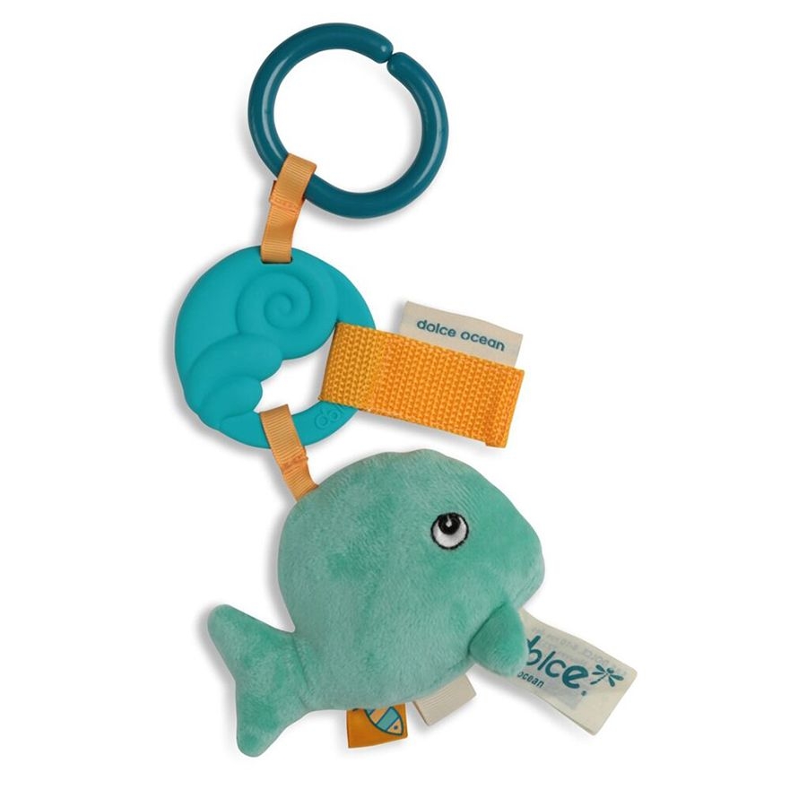 Ο Splash το μικρό φαλαινάκι, της νέας συλλογή «Ocean» της αγαπημένης μας εταιρείας Dolce, θα γίνει ο καλύτερος φίλος των μικρών παιδιών! Τα όμορφα και πολύχρωμα ανάγλυφα υφάσματα, με τα θαλασσινά μοτίβα, θα κρατήσουν τα μωρά απασχολημένα και θα κινήσουν την περιέργεια τους. Το παιχνίδι διαθέτει επίσης μασητικό σιλικόνης, δακτυλίδι, και ελαστικά υφάσματα διαφορετικών υφών, για επιπλέον διασκέδαση. Τα μωρά θα λατρέψουν τους ήχους που μπορούν να παράγουν με τη μικρή φάλαινα, ενώ τα έντονα χρώματά της, τους είναι ιδιαίτερα ελκυστικά. Ένας υψηλής ποιότητας παιχνίδι που διακρίνεται για τον ασφαλή σχεδιασμό του που σημαίνει ότι τα μωρά μπορούν να χρησιμοποιούν διαφορετικά μέρη του ως μασητικά χωρίς κίνδυνο. Το συγκεκριμένο προϊόν είναι ιδανικό για στερέωση στο καρότσι ή την κούνια του μωρού.