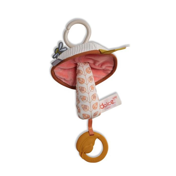 Το χαριτωμένο μανιτάρι δραστηριοτήτων της νέας συλλογή «Earth» της αγαπημένης μας εταιρείας Dolce, είναι το ιδανικό παιχνίδι για στερέωση στο καρότσι ή τη κούνια του μωρού! Τα όμορφα και πολύχρωμα ανάγλυφα υφάσματα, με τα γήινα μοτίβα, θα κρατήσουν τα μωρά απασχολημένα και θα κινήσουν την περιέργεια τους. Το παιχνίδι διαθέτει επίσης μασητικό σιλικόνης, δακτυλίδι, και ελαστικά υφάσματα διαφορετικών υφών, για επιπλέον διασκέδαση. Τα μωρά θα λατρέψουν τους ήχους που μπορούν να παράγουν με το μικρό μανιταράκι, ενώ τα έντονα χρώματά του, τους είναι ιδιαίτερα ελκυστικά. Ένας υψηλής ποιότητας παιχνίδι που διακρίνεται για τον ασφαλή σχεδιασμό του, που σημαίνει ότι τα μωρά μπορούν να χρησιμοποιούν διαφορετικά μέρη του ως μασητικά χωρίς κίνδυνο.