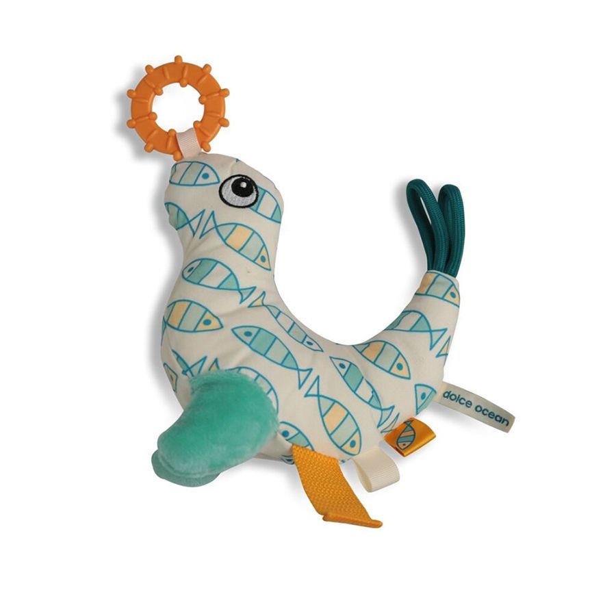 Η Sandy το μικρό θαλάσσιο λιοντάρι, της νέας συλλογή «Ocean» της αγαπημένης μας εταιρείας Dolce, θα γίνει ο καλύτερος φίλος των μικρών παιδιών! Τα όμορφα και πολύχρωμα ανάγλυφα υφάσματα, με τα θαλασσινά μοτίβα, θα κρατήσουν τα μωρά απασχολημένα και θα κινήσουν την περιέργεια τους. Το παιχνίδι διαθέτει επίσης μασητικό σιλικόνης, δακτυλίδι, και ελαστικά υφάσματα διαφορετικών υφών, για επιπλέον διασκέδαση. Τα μωρά θα λατρέψουν τους ήχους που μπορούν να παράγουν με το μικρό θαλάσσιο λιονταράκι, ενώ τα έντονα χρώματά του, τους είναι ιδιαίτερα ελκυστικά. Ένας υψηλής ποιότητας παιχνίδι που διακρίνεται για τον ασφαλή σχεδιασμό του, που σημαίνει ότι τα μωρά μπορούν να χρησιμοποιούν διαφορετικά μέρη του ως οδοντοφυΐες χωρίς κίνδυνο.