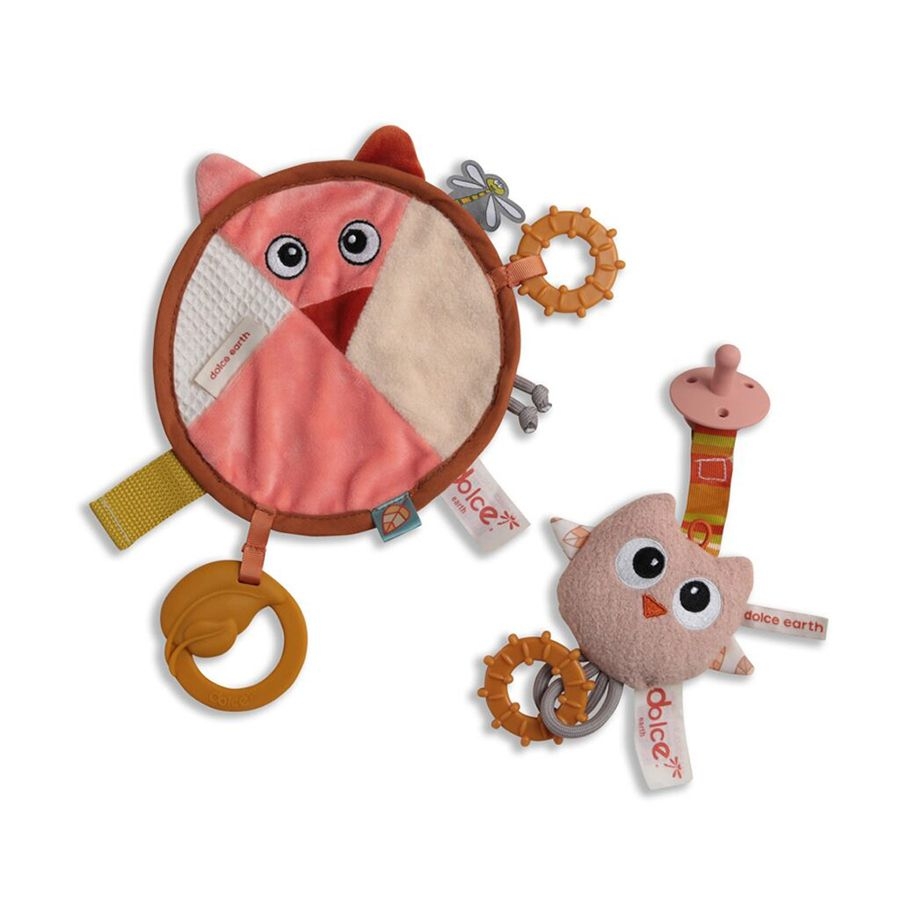Η Fiona η μικρή αλεπουδίτσα της νέας συλλογή «Earth» της αγαπημένης μας εταιρείας Dolce, παίρνει τη μορφή ενός πανέμορφου, και απίστευτα απαλού doudou παρηγοριάς και υπόσχεται να γίνει ο καλύτερος φίλος των μικρών παιδιών! Τα όμορφα και πολύχρωμα ανάγλυφα υφάσματα, με τα γήινα μοτίβα, θα κρατήσουν τα μωρά απασχολημένα και θα κινήσουν την περιέργεια τους. Το παιχνίδι διαθέτει επίσης μασητικό σιλικόνης, δακτυλίδι, και ελαστικά υφάσματα διαφορετικών υφών, για επιπλέον διασκέδαση. Τα μωρά θα λατρέψουν τους ήχους που μπορούν να παράγουν με τη μικρή αλεπουδίτσα, ενώ τα έντονα χρώματά της, τους είναι ιδιαίτερα ελκυστικά. Η Fiona, συνοδεύεται από ασορτί κλιπ πιπίλας, με τον χαριτωμένο Oliver, τη κουκουβάγια! Ένας υψηλής ποιότητας παιχνίδι που διακρίνεται για τον ασφαλή σχεδιασμό του, που σημαίνει ότι τα μωρά μπορούν να χρησιμοποιούν διαφορετικά μέρη του ως οδοντοφυΐες χωρίς κίνδυνο.