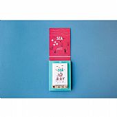 Περιλαμβάνει: 9 αναδιπλούμενα φύλλα, 6 ξύλινες στάμπες και 3 διαφορετικά χρώματα μελάνι (κόκκινο, πορτοκαλί και μπλε).