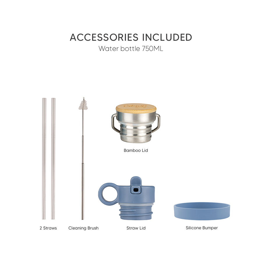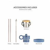 Περιλαμβάνει: 1 βουρτσάκι καθαρισμού, 1 προφυλακτήρα σιλικόνης, 1 καπάκι με μπαμπού, 1 καπάκι με ενσωματωμένο στόμιο και 1 επιπλέον καλαμάκι.