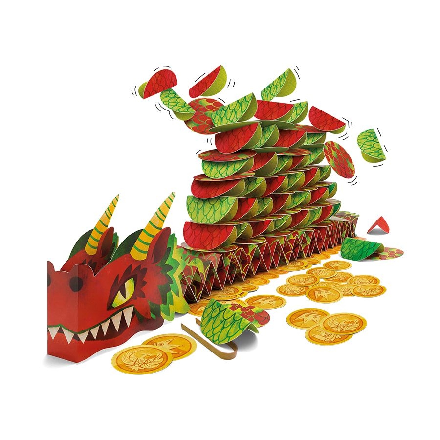 Ποιος θα καταφέρει να κλέψει τον περισσότερο θησαυρό από το δράκο; Πριν ξεκινήσετε το παιχνίδι, συναρμολογήστε το σώμα και το κεφάλι του δράκου και τοποθετείστε τα χρυσά νομίσματα στη βάση του. Οι παίκτες παίζουν με τη σειρά και τοποθετούν ο καθένας τις κάρτες-λέπια του, στο σώμα του δράκου, χρησιμοποιώντας το τσιμπιδάκι που περιλαμβάνεται στη συσκευασία. Υπάρχουν δύο ειδών κάρτες, οι κάρτες-λέπια των παικτών σε 2 χρώματα (κόκκινο και πράσινο), οι οποίος διπλώνονται στη μέση, και οι κάρτες επιπέδου, που τοποθετούνται οριζόντια, ως διαχωριστικά στα κατακόρυφα επίπεδα που δημιουργούνται από τους παίκτες με τις κάρτες-λέπια. Ο παίκτης που είναι η σειρά του να παίξει, τραβά έπειτα 3 κάρτες επιπέδου και ελέγχει το σύμβολο στην κάτω πλευρά και εκτελεί αυτό που του υποδεικνύει. Στο τέλος του γύρου του, ο παίκτης κλέβει ένα χρυσό νόμισμα από το θησαυρό του δράκου, για κάθε κάρτα-λέπι που τοποθέτησε. Αντίστοιχα, για κάθε κάρτα-λέπι που του έπεσε κατά την τοποθέτηση, επιστρέφει ένα χρυσό νόμισμα στο θησαυρό.