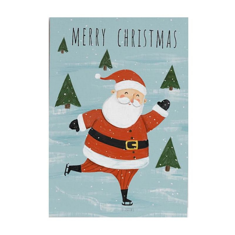 Χριστουγεννιάτικη χειροποίητη κάρτα με Φάκελο - Άγιος Βασίλης σε πατινάζ (11x15.5) - J.o. Creations