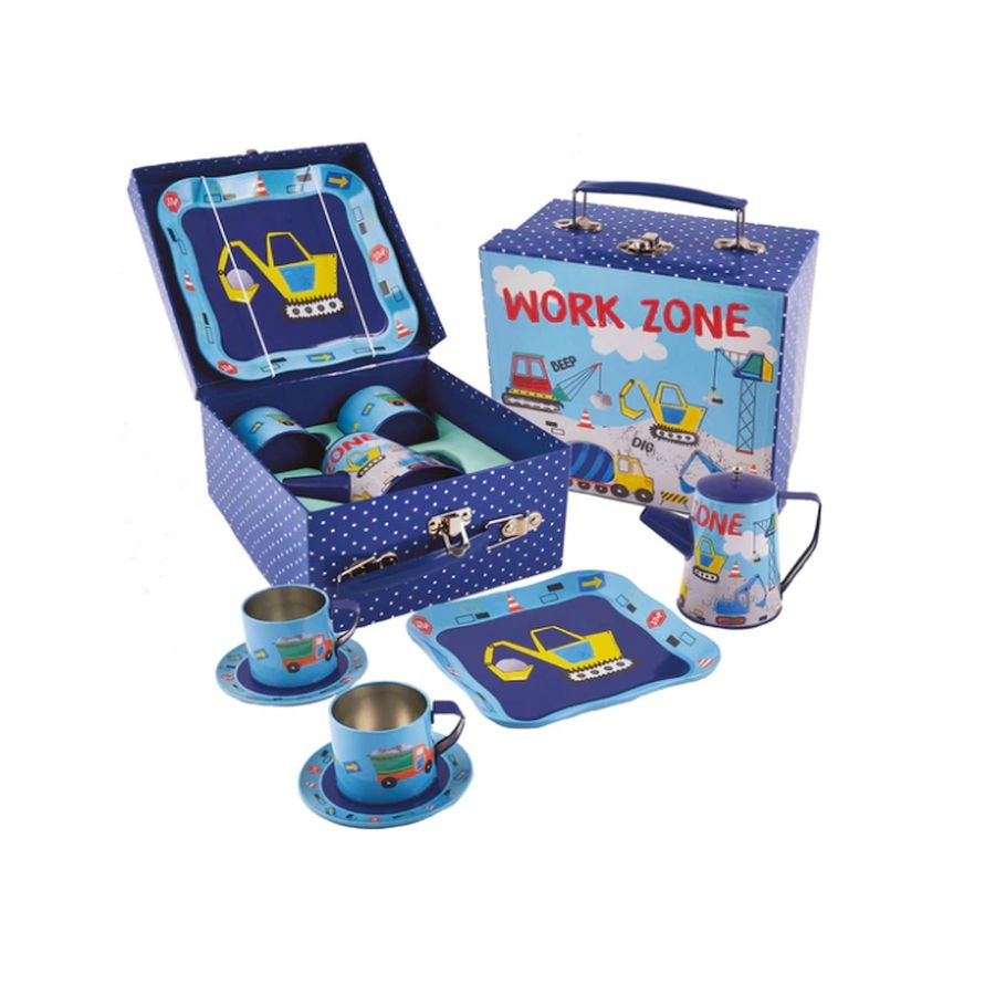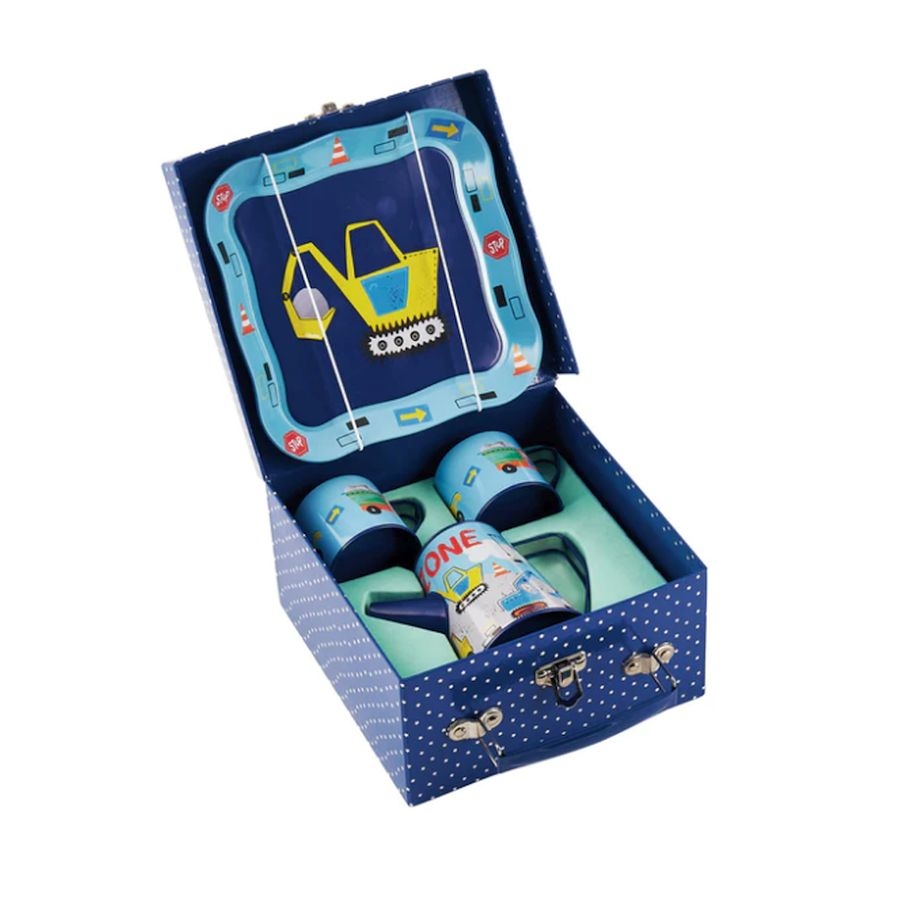 Κατασκευασμένο για το εργοτάξιο, το σετ κολατσιού 7 τεμαχίων με θέμα "Κατασκευή" έχει 2 κούπες με πιατάκια, μια τσαγιέρα για καφέ/τσάι με καπάκι και δίσκο σερβιρίσματος! Διατίθεται σε μια επαναχρησιμοποιήσιμη πανέμορφη θήκη μεταφοράς από χαρτόνι με εικονογραφήσεις από το εργοτάξιο.