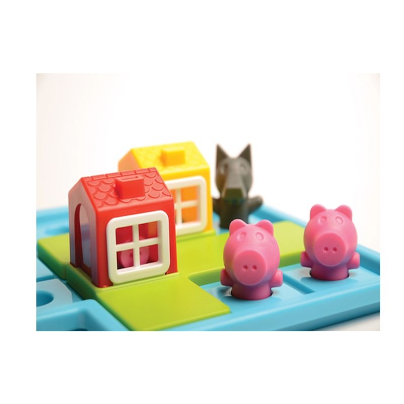 Μια φορά κι έναν καιρό… Μπορείτε να βοηθήσετε τα τρία μικρά γουρουνάκια να χτίσουν τα σπίτια τους; Μπορείτε να τα φτιάξετε έτσι ώστε τα γουρουνάκια να παίζουν έξω από αυτά; Εάν εντοπίσετε το λύκο μπορείτε να τα βοηθήσετε να παραμείνουν ασφαλή μέσα στα σπίτια τους; Το παιχνίδι «Τρία μικρά γουρουνάκια», αποτελεί ένα εξαιρετικό παιχνίδι εξάσκησης της νοημοσύνης για τα μικρά παιδιά. Διαθέτει τρία μεγάλα κομμάτια του παζλ, τα οποία εύκολα κρατούν τα μικρά χεράκια των παιδιών. Το ενδιαφέρον τους κεντρίζεται ιδιαίτερα από τον τρόπο που τα γουρουνάκια κοιτάνε μέσα από τα παραθυράκια των σπιτιών.