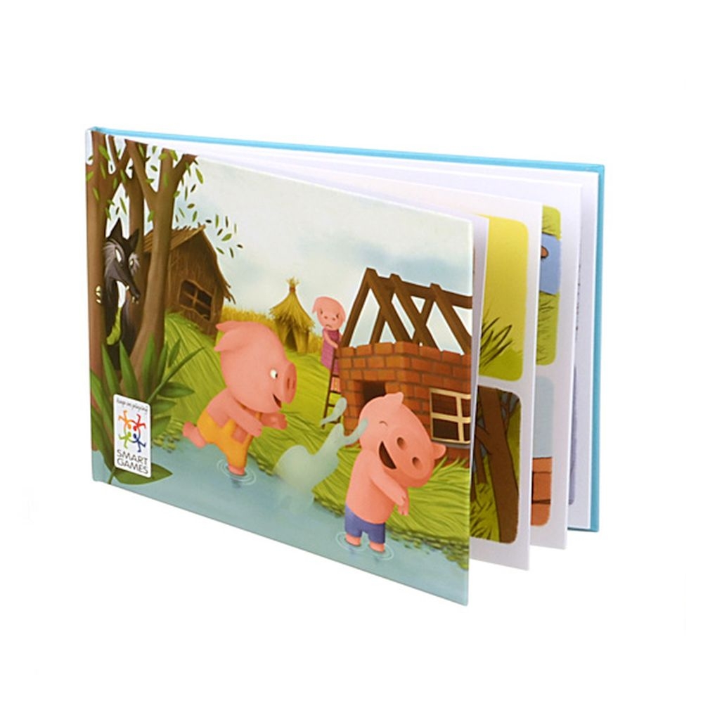 Περιλαμβάνει: Ένα βιβλίο-ιστορία με εικόνες, ένα βιβλιαράκι με 48 προκλήσεις (24 με το λύκο και 24 χωρίς) μαζί με τις λύσεις, 3 κομμάτια παζλ, 3 γουρουνάκια και 1 λύκο.