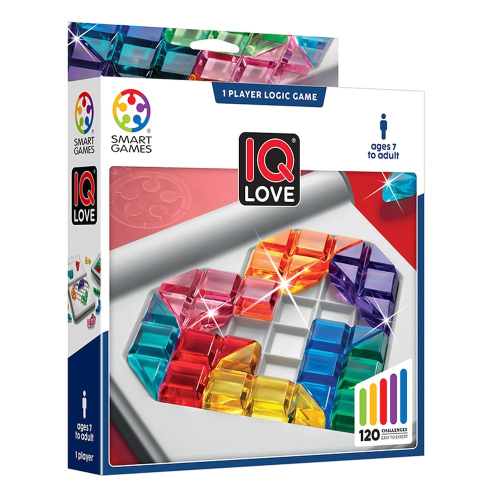 Ακονίστε το μυαλό σας και δώστε του αγάπη με αυτούς τους χρωματιστούς πολύτιμους λίθους του IQ Love. Πώς θα καταφέρετε να χωρέσετε όλα τα κομμάτια στο ταμπλό του παιχνιδιού; Αυτό το παζ ταξιδίου είναι ό,τι χρειάζεστε! Περιλαμβάνει ένα ταμπλό 2 όψεων και 120 προκλήσεις....για μια μακροχρόνια σχέση! Η σειρά παιχνιδιών IQ της εταιρείας Smart Games αποτελείται από υπέροχα παιχνίδια - σπαζοκεφαλιές που ενισχύουν τη συγκέντρωση του ατόμου, αναπτύσσουν την ικανότητα επίλυσης προβλημάτων και εξασκούν τη χωρική αντίληψη!