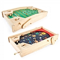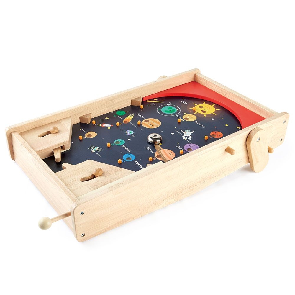 Ξύλινο 2 σε 1 παιχνίδι δράσης από την εταιρία Pintoy. Το σετ περιλαμβάνει φλιπεράκι ποδοσφαιράκι και φλιπεράκι διάστημα και βοηθάει τα παιδιά να αναπτύξουν, ή να βελτιώσουν δεξιότητες όπως λεπτή κίνηση, συγκέντρωση, ισορροπία, συνεργασία και δημιουργικότητα. Είναι κατασκευασμένο από μασίφ ξύλο καουτσουκόδεντρου και οικολογικά χρώματα και λούστρα. Οι γωνίες δεν είναι αιχμηρές ώστε να μην υπάρχει κίνδυνος τραυματισμού. Η συσκευασία είναι κατασκευασμένη από ανακυκλώσιμα υλικά.