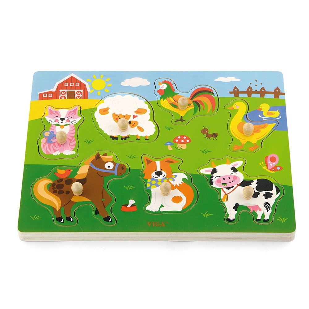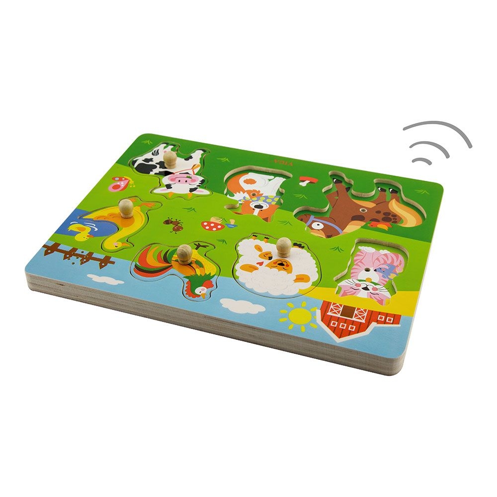 Η εταιρεία Viga δημιούργησε το συγκεκριμένο παζλ με σφηνώματα, έτσι ώστε οι μικροί μας φίλοι να αναπτύξουν δεξιότητες όπως η λεπτή κινητικότητα και ο συντονισμός χεριού- ματιού. Επιπλέον τοποθετώντας το κομμάτι στην σωστή θέση ακούγεται και ο ήχος που κάνει το κάθε ζωάκι.