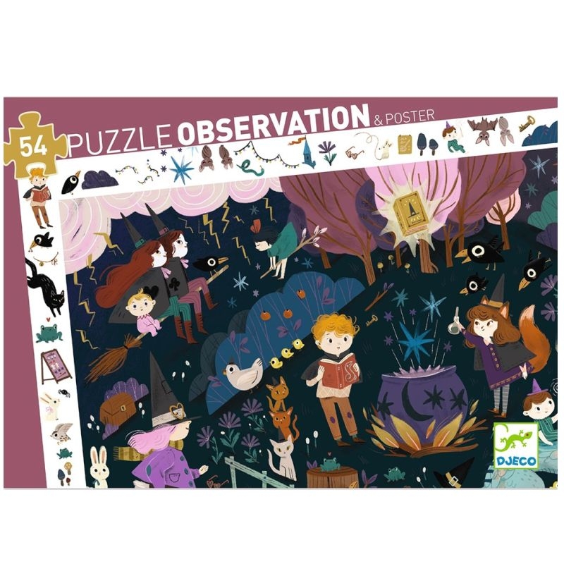 Τα συναρπαστικά μαθήματα της ακαδημίας των μάγων μόλις ξεκίνησαν! Ποιος θα ξεχωρίσει άραγε; Συνθέστε το παζλ, για να το ανακαλύψετε! Το παζλ της εταιρείας Djeco περιλαμβάνει 54 κομμάτια από υψηλής ποιότητας πεπιεσμένο χαρτόνι, καθώς και μια αφίσα με την εικόνα του παζλ. Αφού το κατασκευάσετε, παρατηρήστε τα αντικείμενα που υπάρχουν περιμετρικά στην εικόνα και προσπαθήστε να τα εντοπίσετε μέσα στο παζλ.