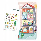 -Δημιουργία με αυτοκόλλητα: 1 πτυσσόμενη σκηνή εικόνας ενός σπιτιού, 2 φύλλα αυτοκόλλητων για να γεμίσετε τη σκηνή.