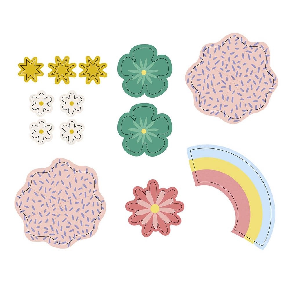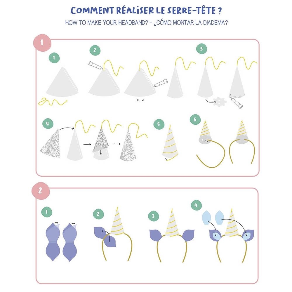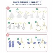 Περιλαμβάνει: 1 καρτέλα γκλίτερ, 1 καρτέλα με άσπρο χαρτόνι (κέρατο), 1 καρτέλα με χάρτινα λουλούδια, 2 καρτέλες με τα αυτάκια, 1 στέκα και φυλλάδιο με οδηγίες!