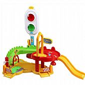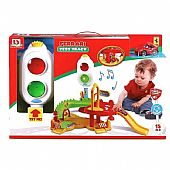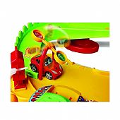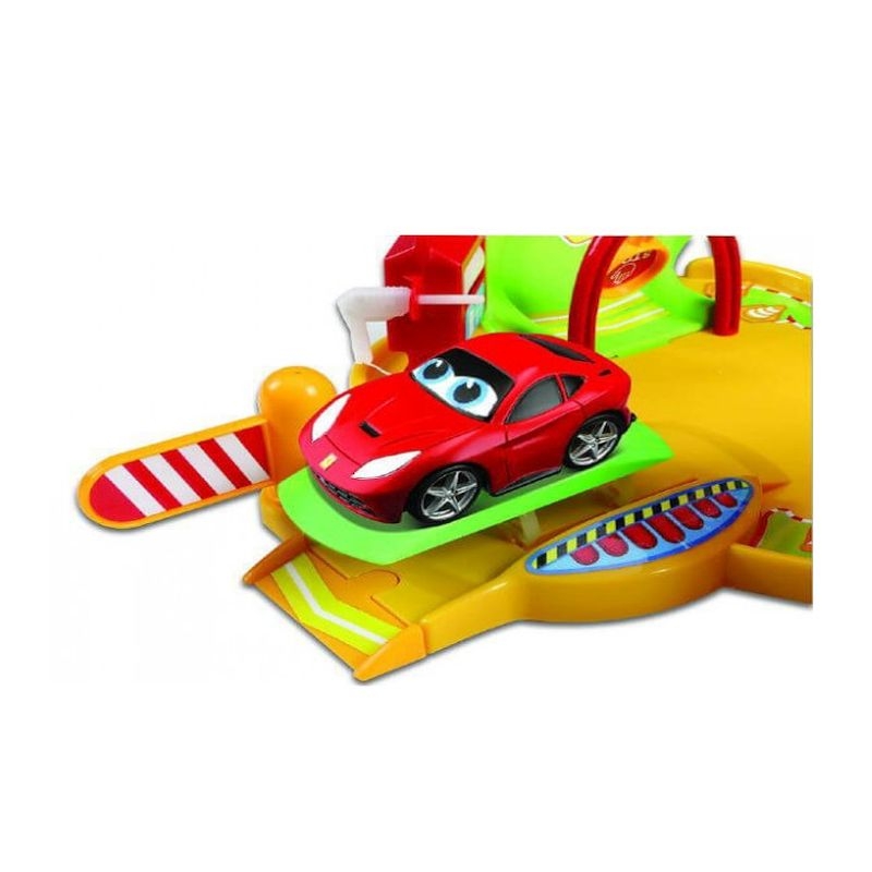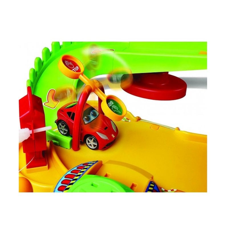 Κατασκευασμένο από πλαστικό υψηλής ποιότητας, ασφαλές, με υπερυψωμένο αυτοκινητόδρομο και φανάρι καθώς και ανελκυστήρα για το αυτοκίνητο Ferrari. Όταν πατηθεί το κουμπί, ανάβει το φανάρι και ακούγεται ο ήχος του κινητήρα.Είναι ένα εκπαιδευτικό παιχνίδι που βοηθάει το παιδί να αναπτύξει τις λεπτές κινητικές δεξιότητες, τη δημιουργικότητα και τη φαντασία του.