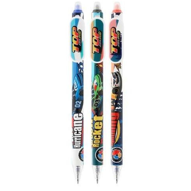 Ένα ιδιαίτερο στυλό Top Speed της εταιρίας M&G σε 3 όμορφα χρώματα Το ειδικό μελάνι gel είναι ευαίσθητο στην θερμότητα, ώστε να μπορείτε να σβήνετε τα λάθη σας τρίβοντας τη με την ειδική σβήστρα στο πίσω μέρος! Η σβήστρα δε φθείρεται όπως οι συνηθισμένες σβήστρες! Με λαβή σιλικόνης για άνετο και εργονομικό κράτημα.