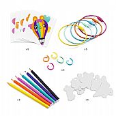 Το σετ περιλαμβάνει: 5 διάφανα περιγράμματα «μαγικού πλαστικού» για να χρωματίσετε, 5 μεταλλικά "καλώδια" με βιδωτά κουμπώματα, 5 συνδετικούς κρίκους, 6 μίνι ξυλομπογιές και βιβλίο οδηγιών.