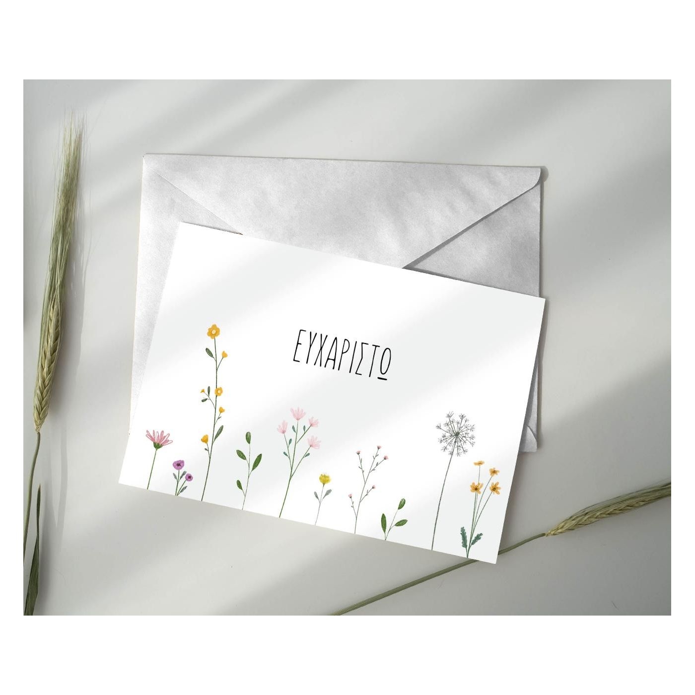 Χειροποίητη ευχετήρια κάρτα τυπωμένη σε χαρτί πολυτελείας ματ 300gr με φάκελο. Ιδανική για να πείτε ευχαριστώ από την J.o. Creations.