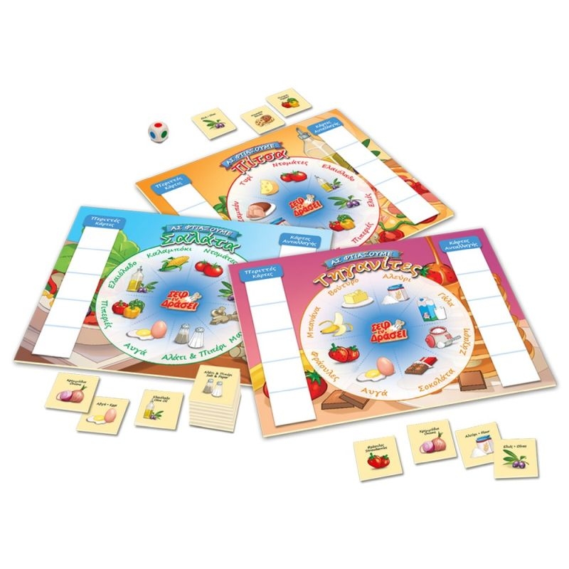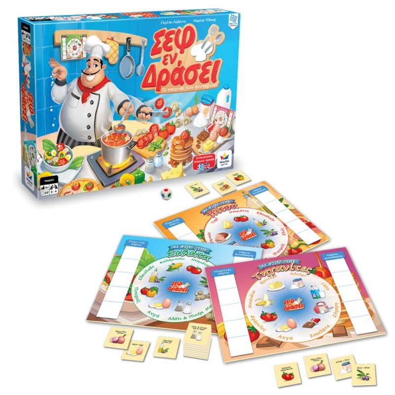 Ένα διασκεδαστικό και εκπαιδευτικό παιχνίδι για μικρούς και μεγάλους! Όλες οι λέξεις στις κάρτες συνταγών είναι γραμμένες σε ελληνικά και αγγλικά. Κατά τη διάρκεια του παιχνιδιού, ο κάθε παίχτης προσπαθώντας να βρει και να τοποθετήσει τα σωστά υλικά στη συνταγή του, μαθαίνει με διασκεδαστικό τρόπο τις λέξεις στα αγγλικά ή αντίστοιχα στα ελληνικά. Το παιχνίδι μπορεί να παιχτεί και από μικρότερα παιδιά χρησιμοποιώντας μόνο τις εικόνες.