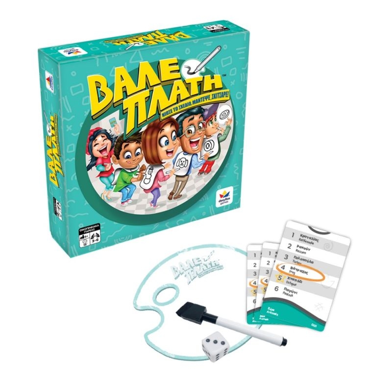 Περιλαμβάνει: 4 κάπες, 5 μαρκαδόροι, 1 ζάρι, 50 κάρτες προκλήσεων, 1 επιφάνεια σχεδίασης και οδηγίες.